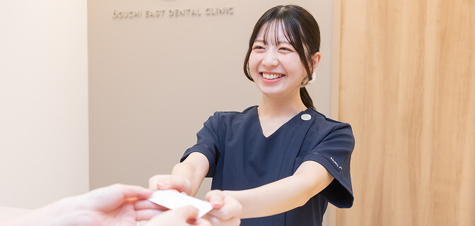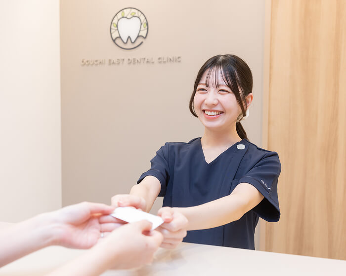 治療前にユニット(診療台)で洗口剤をご使用いただきます。また、お会計の際には自動精算機にてお支払いいただけますので、スピーディなお会計と共に接触リスクを低減させることが可能です。