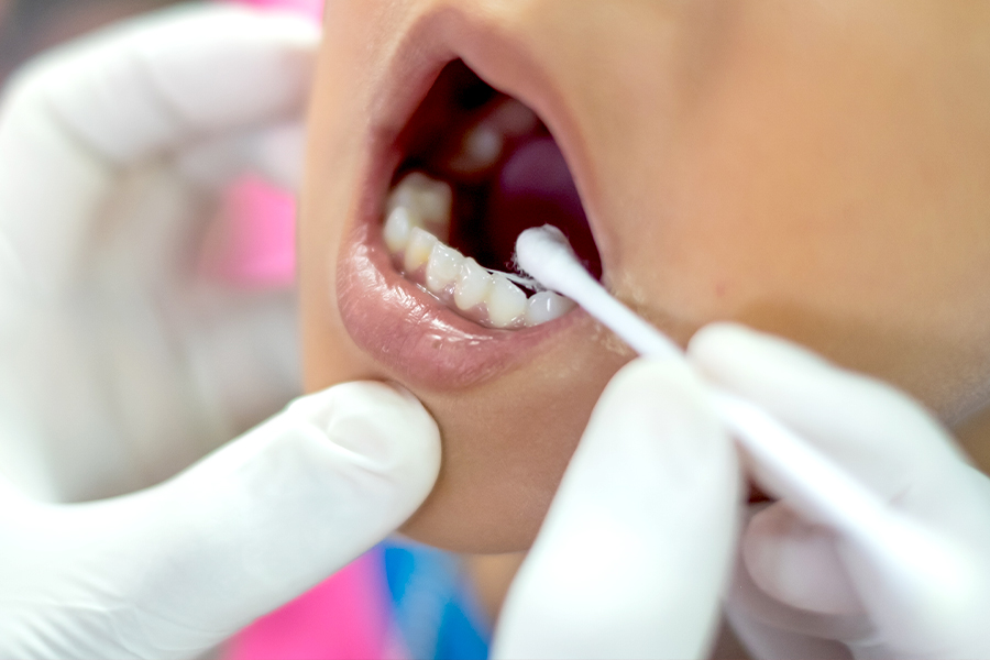 フッ素には歯質を強くし、虫歯菌の働きを抑える効果があります。フッ素を定期的に歯の表面に塗布することで、虫歯になりにくい歯を育てていきます。